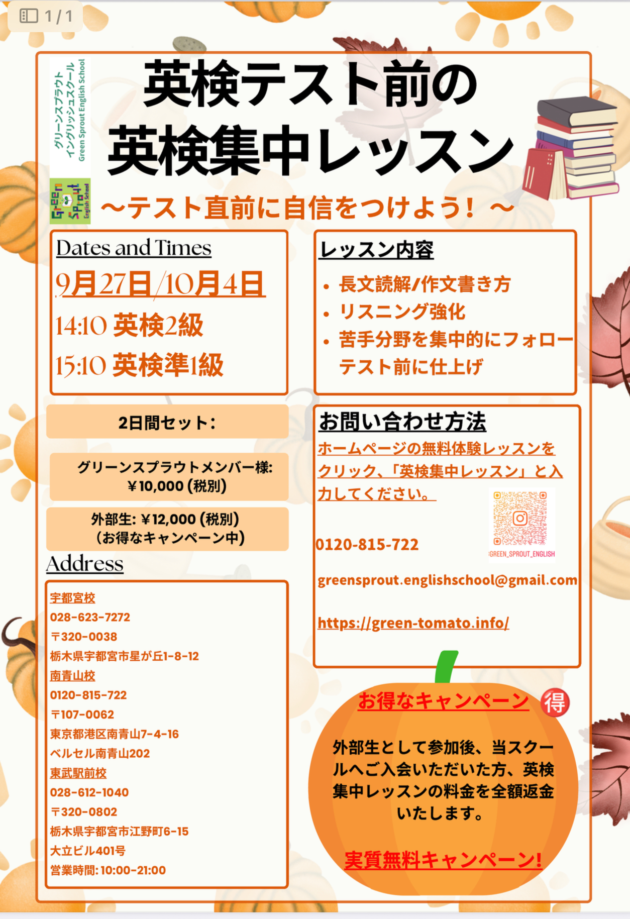 ⭐️ 英検集中レッスン 2日間コース⭐️